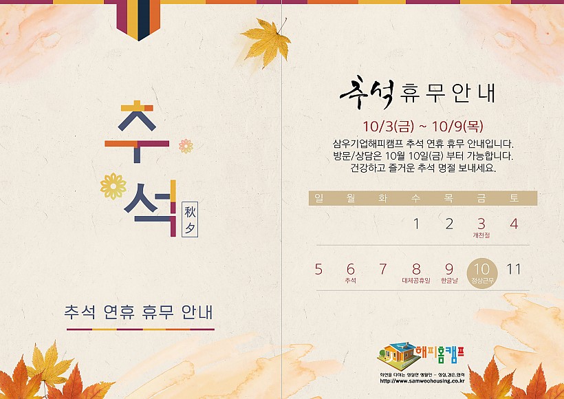 삼우기업해피캠프 추석 연휴 휴무 안내입니다.